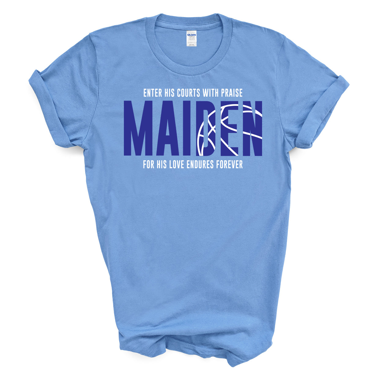 Gildan Blended 50/50 Unisex Short Sleeve Tee with the new Maiden Basketball Courts design.